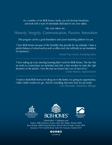 As a member of the BCB Homes family, you will develop friendships PROGRAM